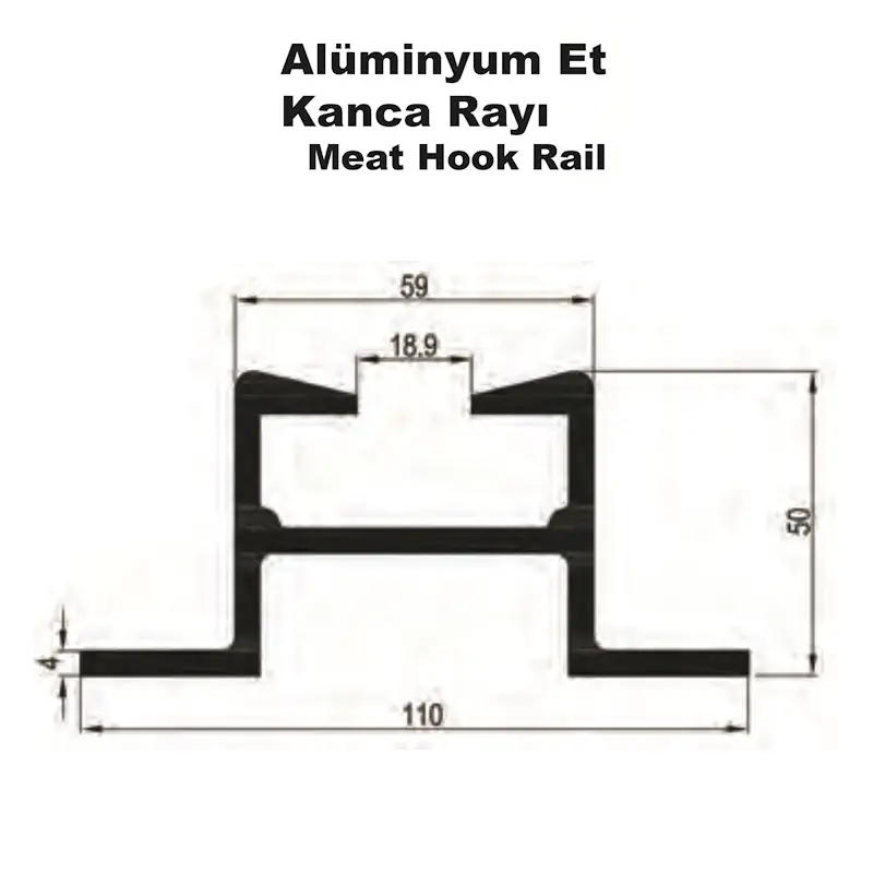 Alüminyum Et Kanca Rayı, frigorifik araç içlerinde karkas et taşıma sistemlerinde ray hattı oluşturmak için kullanılır.