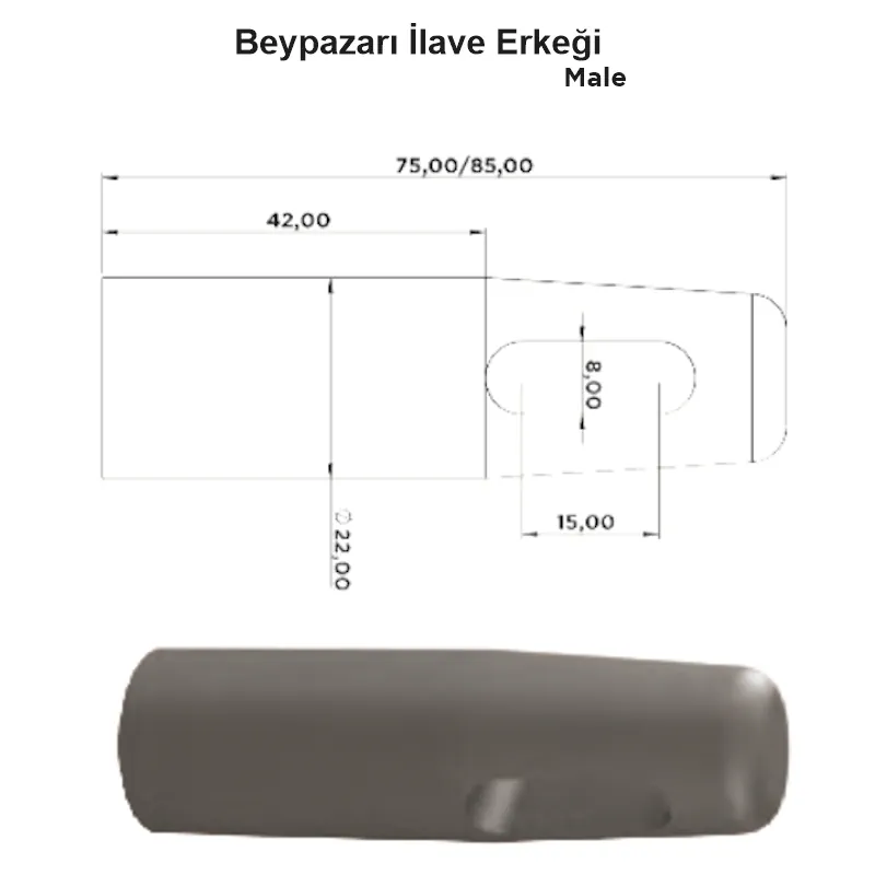 Beypazarı İlave Erkeği, damperli ve ahşap kasa sistemlerinde “baba erkek” kilit mekanizmasına takviye sağlayan tamamlayıcı bir parçadır.