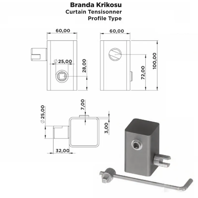 Branda Krikosu, kayar çatı ve tente sistemlerinde brandanın düzgün ve güvenli şekilde gerdirilmesini sağlar. Sağlam yapısı ile uzun ömürlü kullanım sunar.