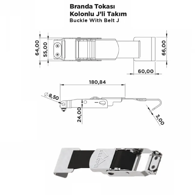 Branda Tokası Kolonlu J’li Takım; J tipi metal toka, yüksek mukavemetli kolon ve bağlantı aparatlarından oluşur. Özellikle kamyon, römork ve tente sistemlerinde brandaların güvenli şekilde sabitlenmesini sağlamak amacıyla kullanılır.