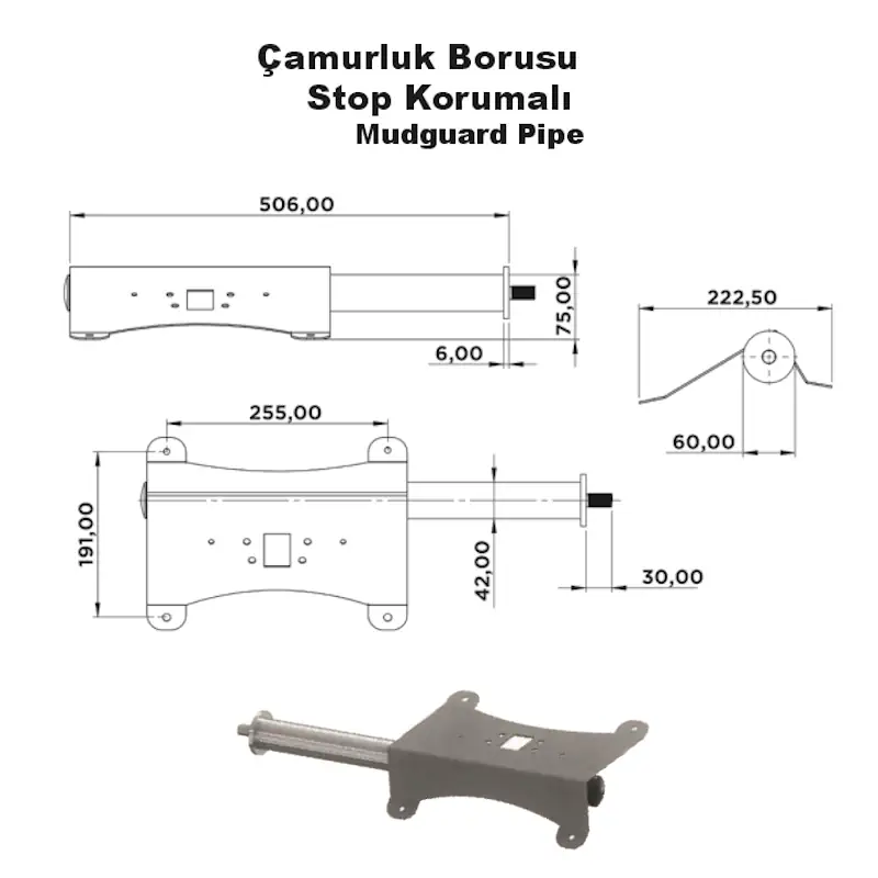 Çamurluk Borusu Stop Korumalı, hafif römork ve karoser uygulamaları için geliştirilmiş, hem çamurluğun montajını sağlayan hem de arka stop lambasını dış darbelerden koruyan dayanıklı bir bağlantı parçasıdır.
