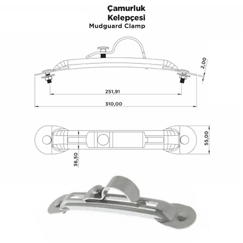 Çamurluk sabitlemesini güvenli ve estetik biçimde yapmanıza yardımcı olan bu kelepçe, her türlü profesyonel montaj için ideal çözümdür.