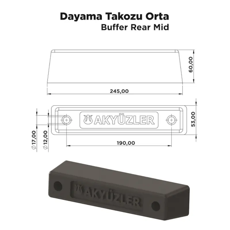 Dayama Takozu Orta, araçlara yükleme sırasında forklift darbelerini ve kasa kapak çarpmalarını önlemek için kullanılan darbe emici koruma parçasıdır.