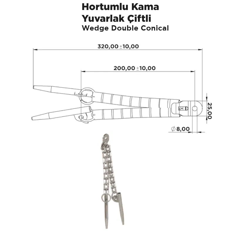 Ahşap kasa sistemleri için yuvarlak uçlu ve çift bağlantılı hortumlu kama modeli.