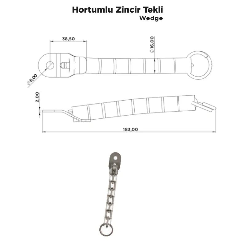 Zincir bağlantılı ve hortum takviyeli, kasa kapakları için dayanıklı tekli kama modeli.