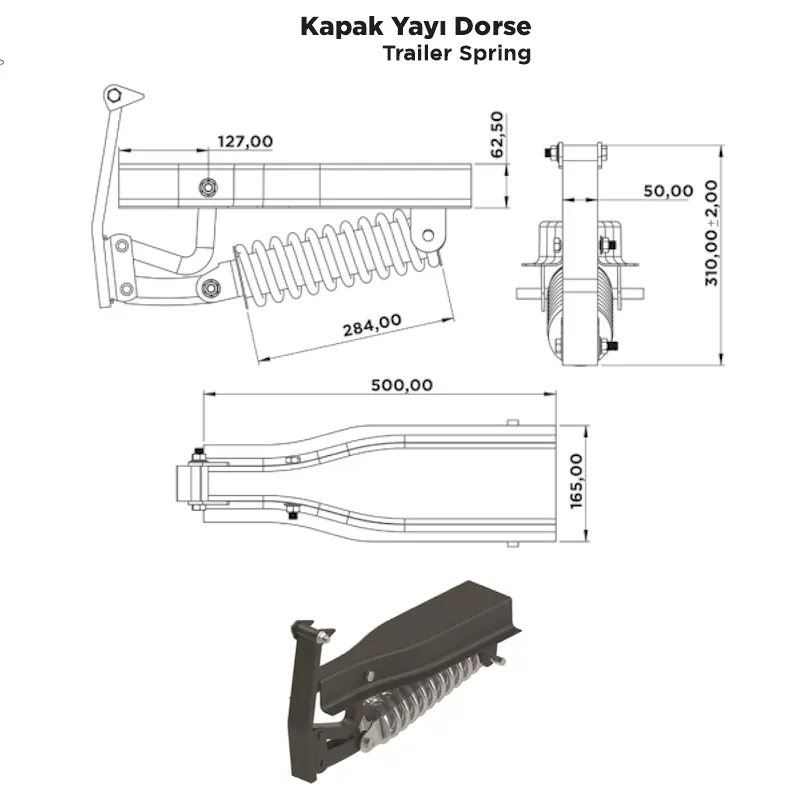 Kapak Yayı Dorse, ağır yük taşıyan dorselerin arka kapak sistemlerinde kapakların kontrollü ve güvenli bir şekilde çalışmasını sağlayan kritik bir ekipmandır. Bu yay, kapakların kolayca açılıp kapanmasına yardımcı olurken, yolda oluşabilecek titreşimleri de absorbe ederek kapağın gevşemesini veya sallanmasını önler.