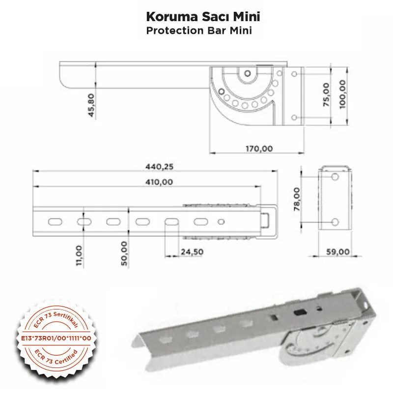 Dayanıklı sac malzemeden üretilen mini koruma sacı, hafif yapısı sayesinde aracın toplam ağırlığını artırmadan güvenliği artırır. Küçük boyutuna rağmen uzun ömürlü ve etkili performans sunar.