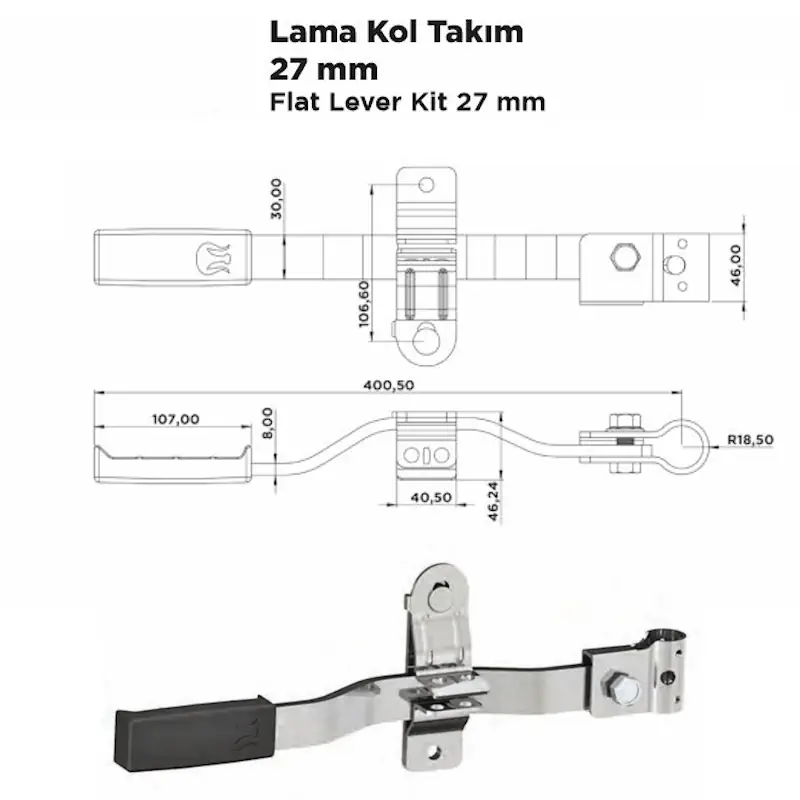 Takım, 27 mm çapında lama kolu ve ona uyumlu bağlantı ekipmanlarını içerir. Araç kapak sistemlerinin dış etkenlerden korunması ve iç yükün güvenli taşınması için kritik bir bileşendir. Galvanizli yüzeyi sayesinde paslanmaya karşı dirençlidir ve zorlu hava koşullarında bile performansını korur.