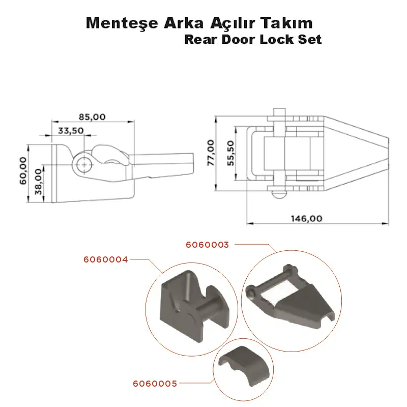 Menteşe Arka Açılır Takım, genellikle kamyonet, treyler ve hafif ticari araçların arka kapak sistemlerinde kullanılır. Arka kapağın güvenli ve sorunsuz şekilde açılıp kapanmasını sağlar. Takım olarak sunulan bu ürün, montaj için gerekli tüm menteşe elemanlarını içerir.
