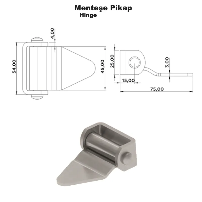 Menteşe Pikap, özellikle pikap tipi araç kasaları için geliştirilmiş, sağlam ve işlevsel bir menteşe çözümüdür. Kasa kapaklarının güvenli açılıp kapanmasını sağlar.