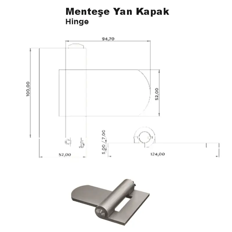 Menteşe Yan Kapak, özellikle kamyonet, römork ve hafif ticari araçların yan kapaklarında kullanılan, yüksek mukavemetli bir bağlantı elemanıdır. Pratik montajı ve dayanıklı yapısı sayesinde yan kapakların açılıp kapanmasını sorunsuz şekilde sağlar.