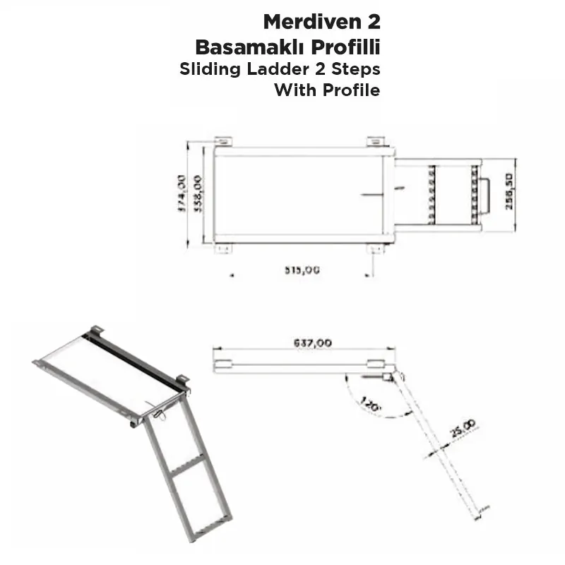 Merdiven 2 Basamaklı Profilli; treyler, kapalı kasa ve frigo araçlar için tasarlanmış, sağlam profilli yapısıyla güvenli iniş-biniş kolaylığı sunar.