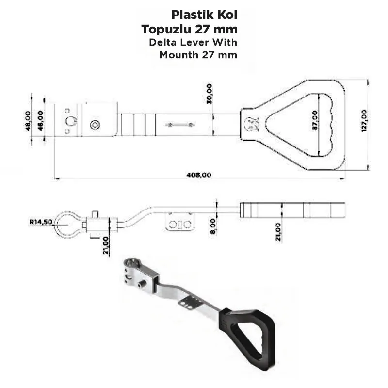 Plastik Kol Topuzlu 27 mm, ergonomik topuz başlığı sayesinde kolay kavrama ve pratik kullanım imkânı sunar. 27 mm kilit sistemleriyle tam uyumlu olarak çalışır.