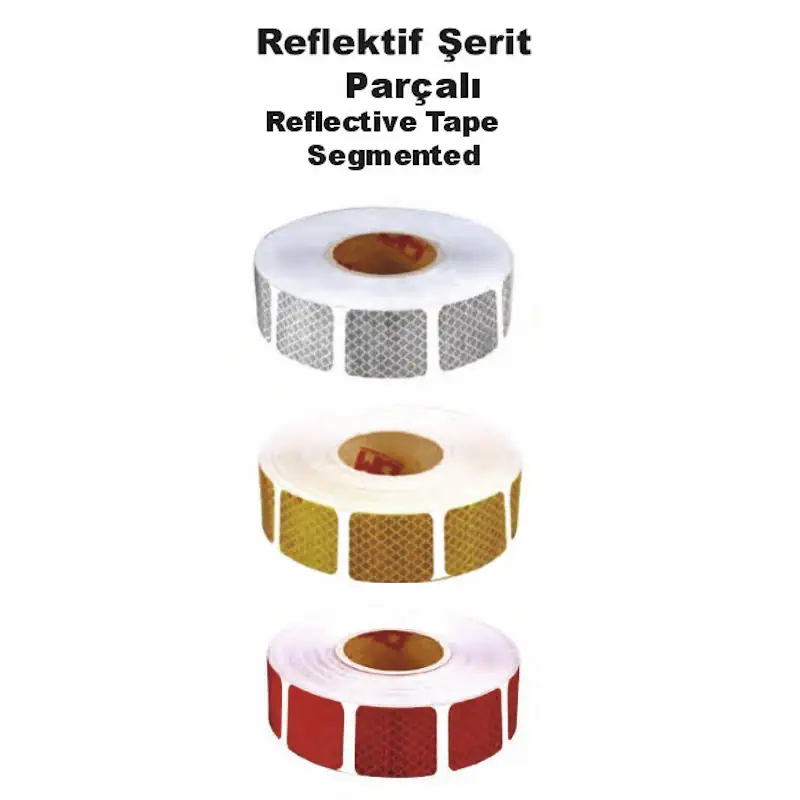 Araç ve ekipmanların görünürlüğünü artırmak için tasarlanan parçalı reflektif şerit, yüksek yansıtıcılığıyla dikkat çeker ve kolay montaj imkânı sunar.