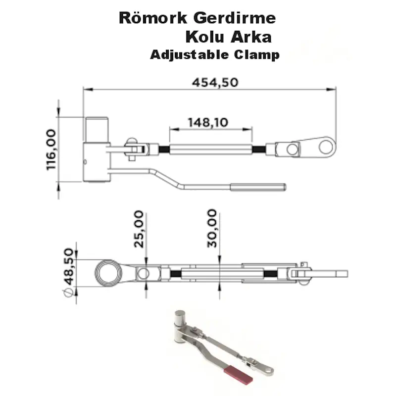 Römork Gerdirme Kolu Arka, yük sabitleme kayış ve halatlarının gerginliğini korumak için arka bağlantı noktasına monte edilen sağlam ve pratik bir ekipmandır.