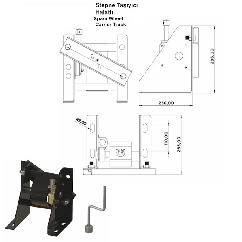 Stepne Taşıyıcı Halatlı, araç altına monte edilen ve yedek lastiğin güvenli bir şekilde taşınmasını sağlayan halat sistemli bir taşıyıcı çözümdür. Halat mekanizması sayesinde stepnenin aşağı-yukarı hareketi kolaylıkla kontrol edilir. Bu özellik, hem montaj hem de sökme işlemlerinde büyük kolaylık sağlar.