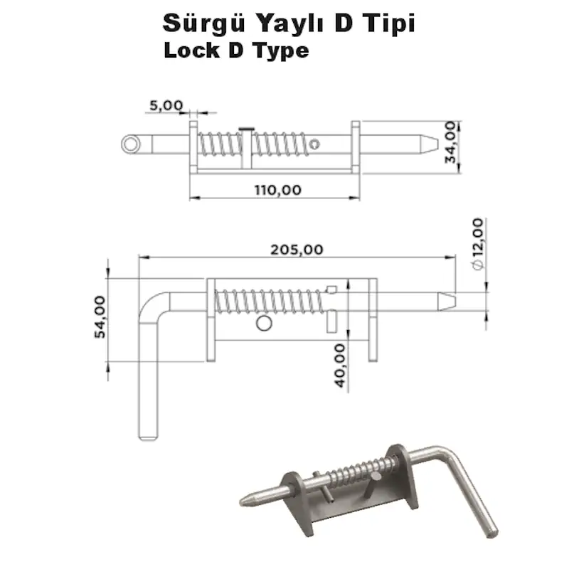 Sürgü Yaylı D Tipi, römork kapaklarında güçlü sabitleme sağlayan dayanıklı ve yay mekanizmalı kilit sistemidir.