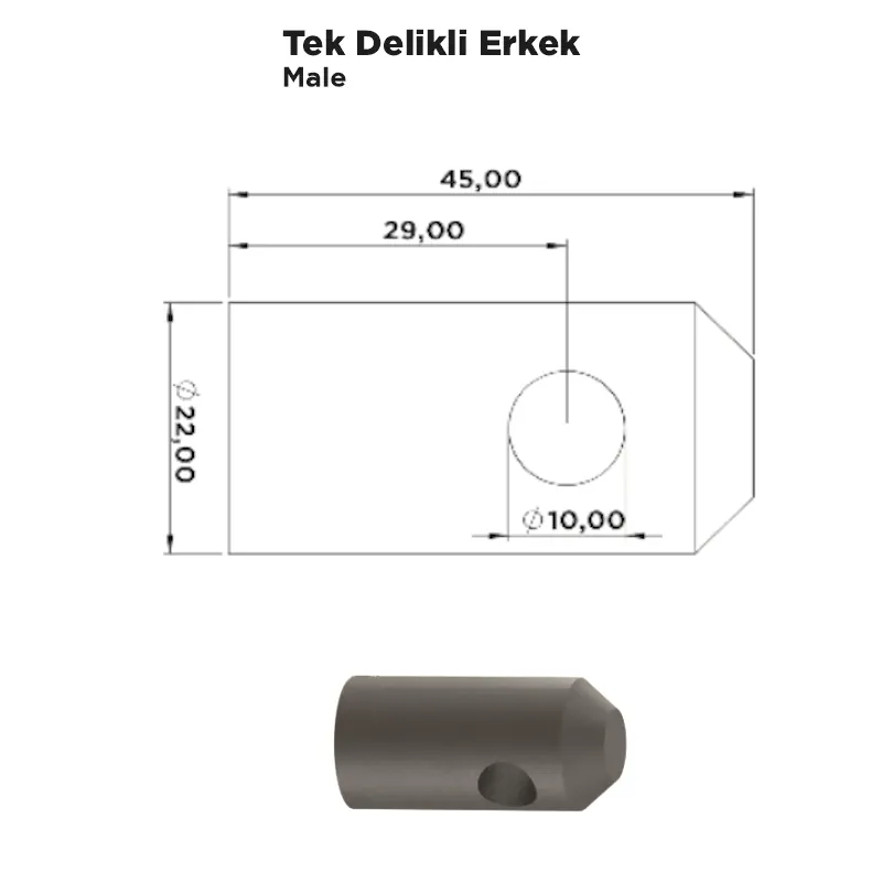 Tek Delikli Erkek, kasa sistemleri ile kapak veya kilit mekanizmaları arasında bağlantı ve yönlendirme görevi üstlenen dayanıklı bir metal parçadır. Delikli yapısı sayesinde pim ya da cıvata ile kolayca sabitlenebilir. Sağlam yapısı sayesinde uzun süreli ve güvenli kullanım sunar.