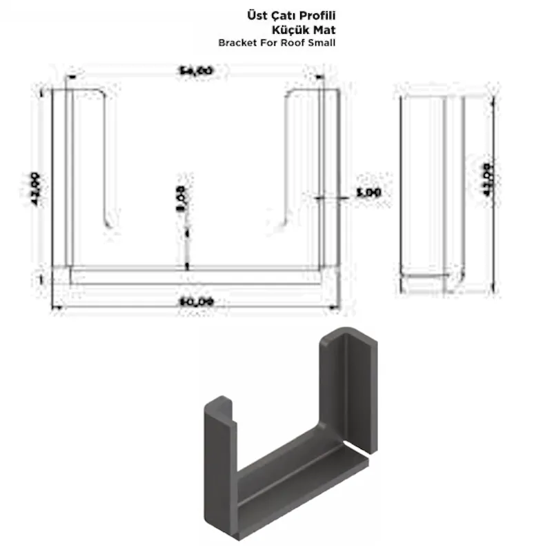 Üst Çatı Profili Küçük Mat, perde sistemine sahip treyler kasalarının üst bölümünde ray bağlantılarını taşımak ve yapının bütünlüğünü sağlamak amacıyla tasarlanmıştır. Büyük modele göre daha kompakt yapıya sahip olan bu profil, hafif yapıların tercih edildiği treylerlerde ideal çözümdür.
