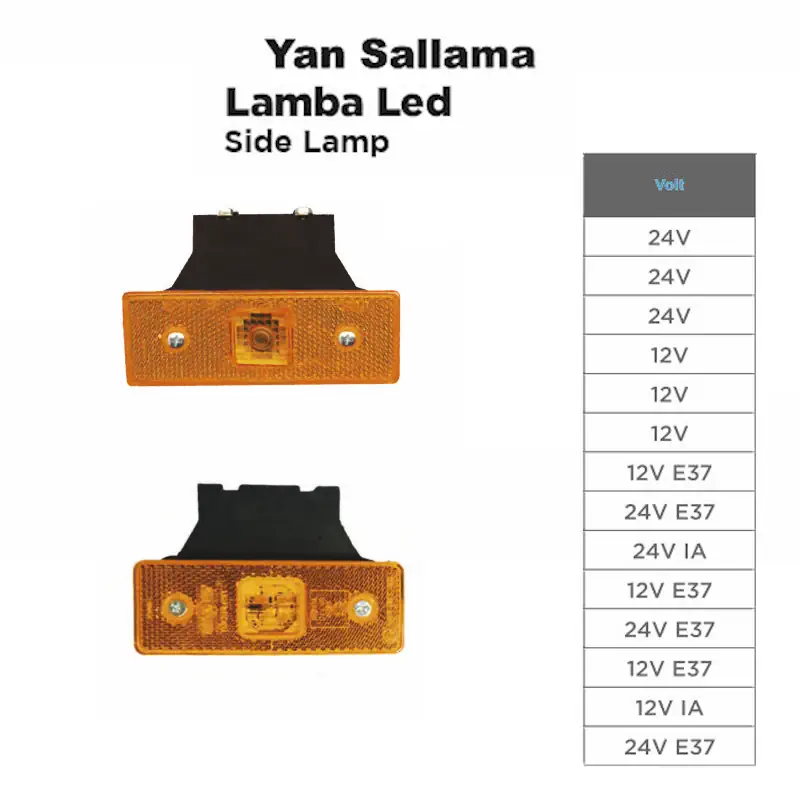 Yan Sallama Lamba Led, araçların yan kısımlarına monte edilerek gece ve gündüz fark edilmesini kolaylaştıran uyarıcı bir aydınlatma çözümüdür. Özellikle uzun araçlarda dönüşlerde veya şerit değişimlerinde, diğer sürücüler için net bir uyarı sağlar.